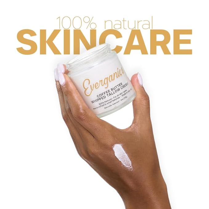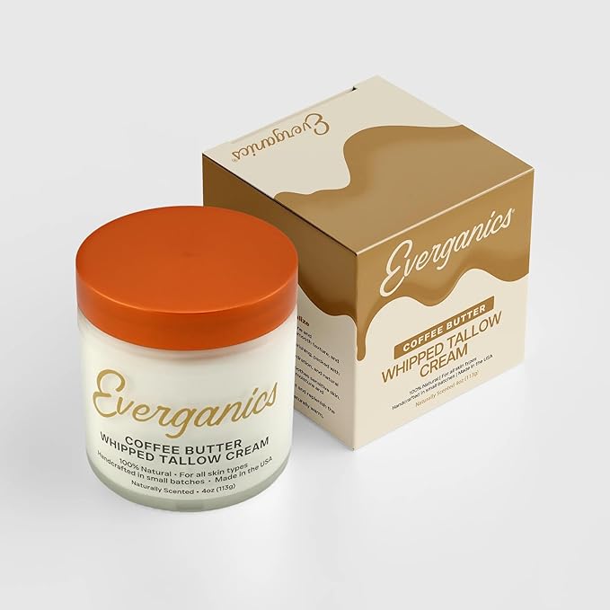 - WHIPPED TO PERFECTION - COFFEE BUTTER & TALLOW HYDRATION: Indulge your skin with Everganics whipped beef tallow balm, infused with organic coffee butter, blended with grass-fed, organic tallow and 9 natural ingredients like shea butter, jojoba oil & manuka honey for deep hydration and natural looking skin.