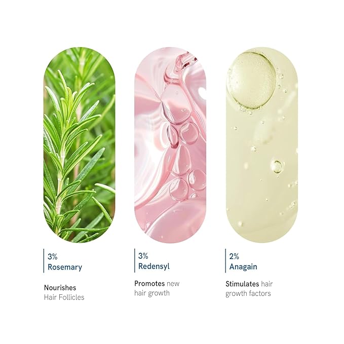 - Powerful Triple-Action Formula – Combines 3% Rosemary, 3% Redensyl, and 2% Anagain to reactivate dormant follicles, boost oxygen flow, and block DHT—strengthening roots and promoting thicker, healthier hair.