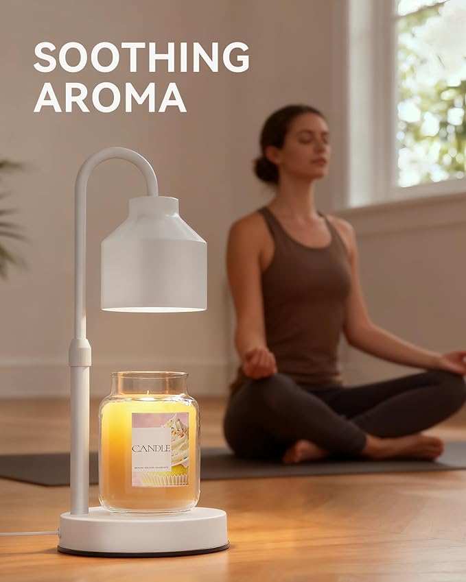 - Brightness&Adjustable Height:Easily adjust the lamp's height and brightness to perfectly accommodate candles of various sizes and heights. Once the fragrance fills the room to your liking, simply dim the light to slow the melt—giving you complete command over scent intensity and dramatically extending your candle's life.