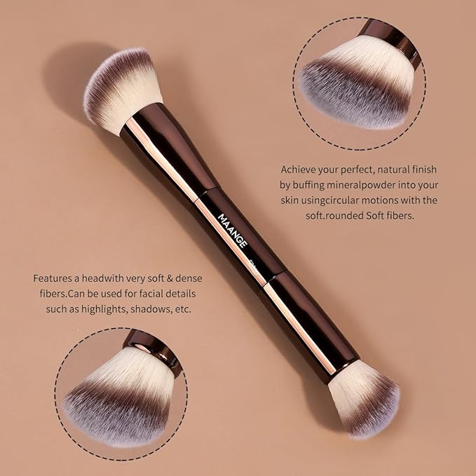- MAANGE 19-piece Makeup Brush Set Includes: 1 double-ended kabuki brushes, 2 foundation brushes, 13 eye makeup brushes, 2 powder puff, and a makeup brush case