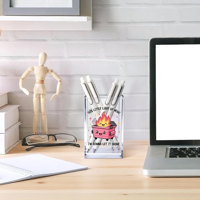 This Little Light Of Mine I'm Gonna Let It Shine Acrylic Cosmetic Pencil Pen Holder Cup, Emotional Dumpster Fire Pen Holder Cup, Therapy Gifts, Mental Health Gifts for Women Colleague Teacher