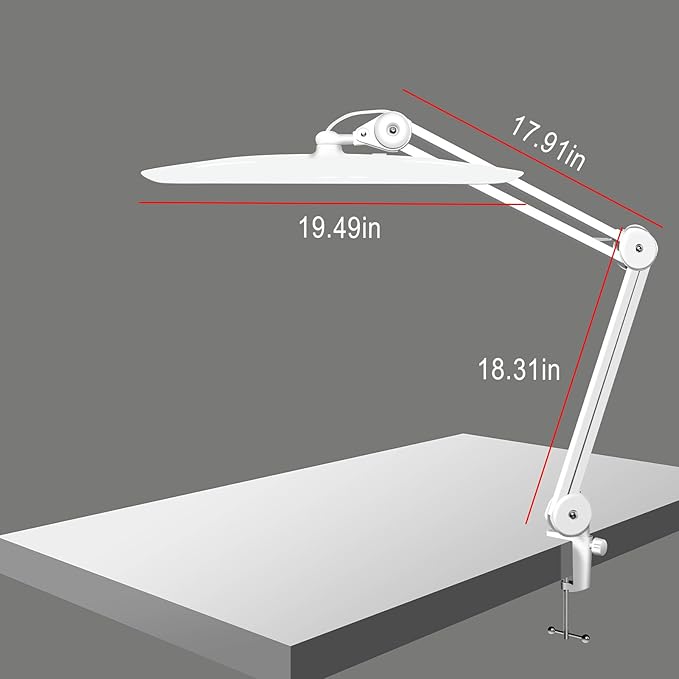 - Easy Assembly & Space Saving: the nail lamp with a 20-inch wide head and adjustable arm for versatile positioning, meeting different lighting needs. Just simply attach the clamp on your desk and insert the lamp into the clamp to fix it