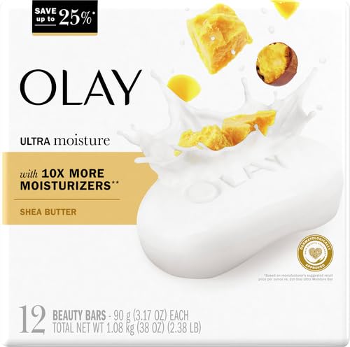 Olay Beauty Bar, Ultra Moisture,10x More Moisturizers, Nourishing Conditioners, Smooth & Gentle on Skin, Vitamin B3 Complex, For All Skin Types, Shea Butter Scent, 3.17 oz, (Pack of 48)