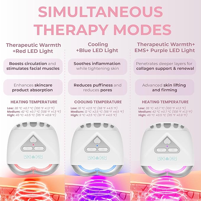 - Dual-Action Heat & Cooling Therapy - Enjoy spa-grade thermal technology at home. The warm therapy promotes blood flow and radiance, while the cool mode tightens pores and reduces puffiness — perfect for morning depuffing or evening relaxation.