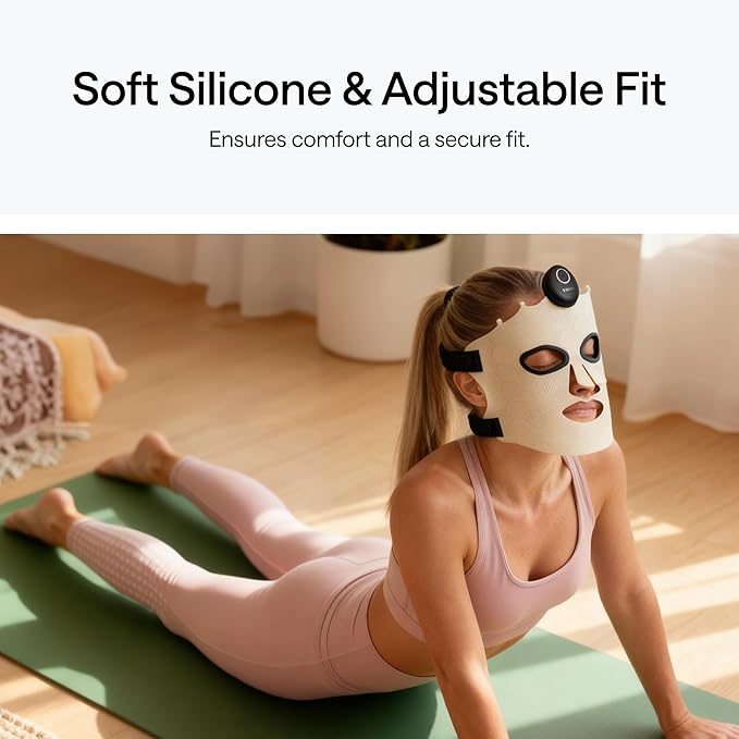 - Soft Silicone & Snug Fit:Crafted from premium, medical-grade silicone for a soft touch and lightweight comfort. The flexible material and adjustable strap adapt perfectly to your face contours, ensuring a secure, snug fit during every treatment.