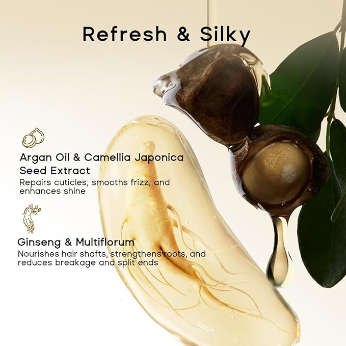 - 【Softens & Nourishes Hair Strands】Enriched with Argan Oil, Camellia Seed, He Shou Wu, Ginseng Root Extract, Panthenol, and Vitamin E. These conditioning ingredients help moisturize and protect hair, improving softness and maintaining natural moisture balance without heaviness