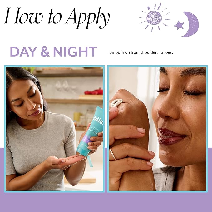 - SOOTHING AND HYDRATING INGREDIENTS: Rich in Vitamin E and intensive Shea Butter, this soothing body lotion features hydrating botanical oils to deeply moisturize. Like all Bliss favorites, there's no parabens and no harmful ingredients.