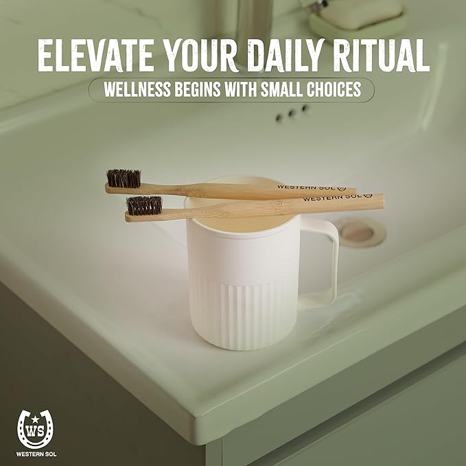 Western SOL Horse Bristle Bamboo Toothbrushes (4-Pack) – Luxury Toothbrush - Plastic-Free, Biodegradable, Eco-Friendly – No Chemicals
