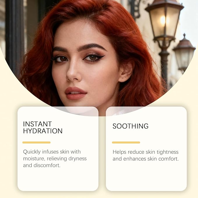 - Instant Hydration: Quickly infuses skin with moisture, relieving dryness and discomfort.