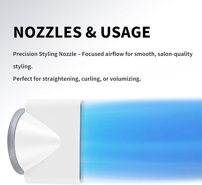 - Lightweight, Low Noise & Ergonomic Build - Compact and lightweight body reduces hand fatigue. Engineered for low-noise operation (≤79 dB). Comes with a concentrator nozzle and 6 feet long cord for flexible home or travel use.