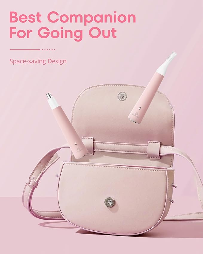 VG VOGCREST Nose Hair Trimmer for Women: Rechargeable Painless Eyebrow Trimmer - Low Noise Portable Facial Hair Removal for Ladies Aged 18-55 - Home Party Travel, Christmas Gifts (Bright Pink)