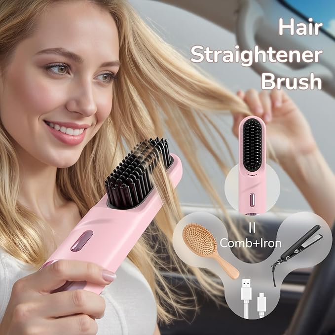 - PORTABLE STYLING ANYWHERE: Weighing only 215g, this mini straightening comb is designed for an on-the-go lifestyle. Its compact size fits easily into any bag, making it ideal for quick touch-ups before work, after the gym, or while traveling. With Type-C charging, you can power up anywhere—so your style stays perfect no matter where you are.