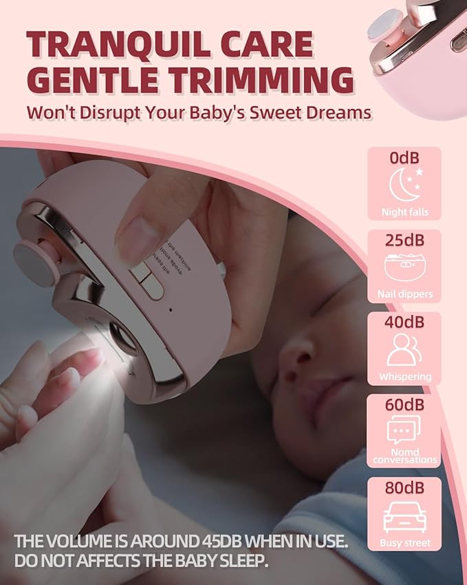 - LED Lighting & Low Noise Design: This smart nail clipper features a built-in LED light that provides clear illumination during trimming, allowing you to see every detail accurately and avoid any mishaps. Additionally, the low-noise design is perfect for noise-sensitive babies, enabling you to trim your sleeping baby's nails at night without waking them.