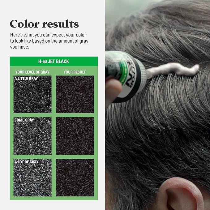 - Long-Lasting - Will not wash out; Lasts up to 8 weeks until the grey grows back; We know every man is different so our hair coloring product is here when those grey hairs begin to grow back