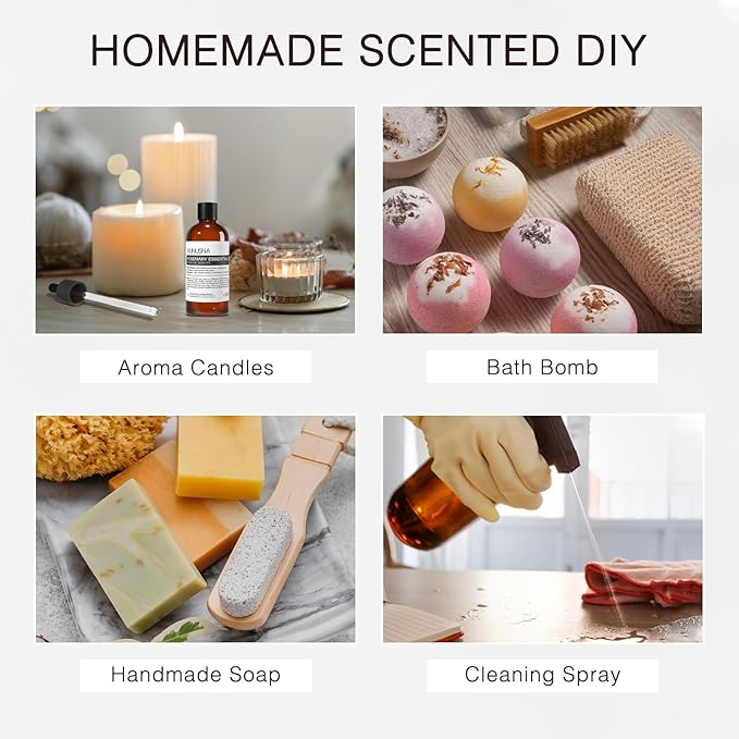- Versatile Uses and DIY Homemade: Except to be used in aromatherapy diffusers, MUNUSNA rosemary essential oil for diffuser could also be used in making soap, candle, bath bomb, shampoos, sprays, perfumes,air fresheners, household cleaners, and various DIY products. It can also be mixed with carrier oils for body massage, promoting relaxation and muscle relief. The versatility of rosemary essential oil makes it one of the most popular essential oils.