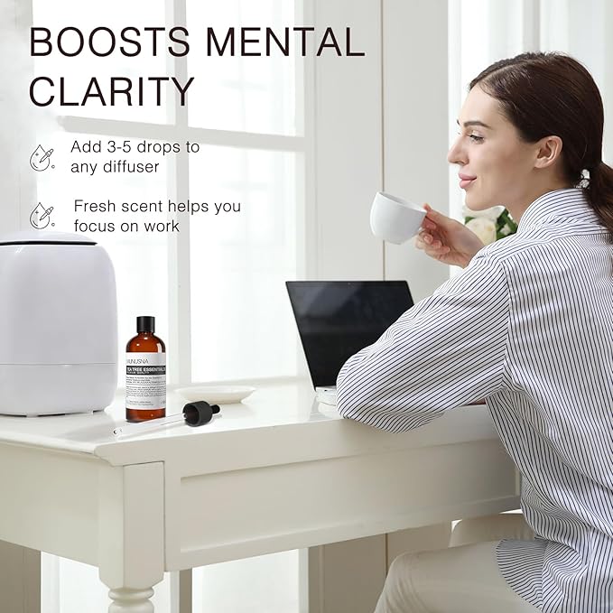 - Natural and Pure Ingredient: MUNUSNA 100% pure tea tree essential oils extracted from Melaleuca alternifolia leaves. Known for its purifying properties, tea tree essential oil has a woody, earthy and herbal aroma and is undiluted, no additives, no fillers.