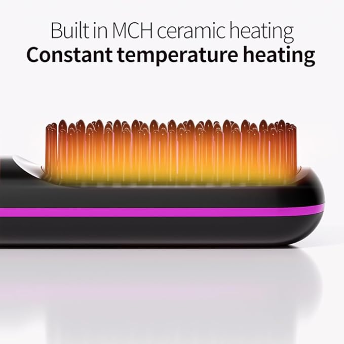 Go Brush Pro 2025 Cordless Hair Straightener Brush – 3 Heat Settings, USB Rechargeable, 2-in-5 Straightener & Curler, Ionic Anti-Static for All Hair Types (Black)