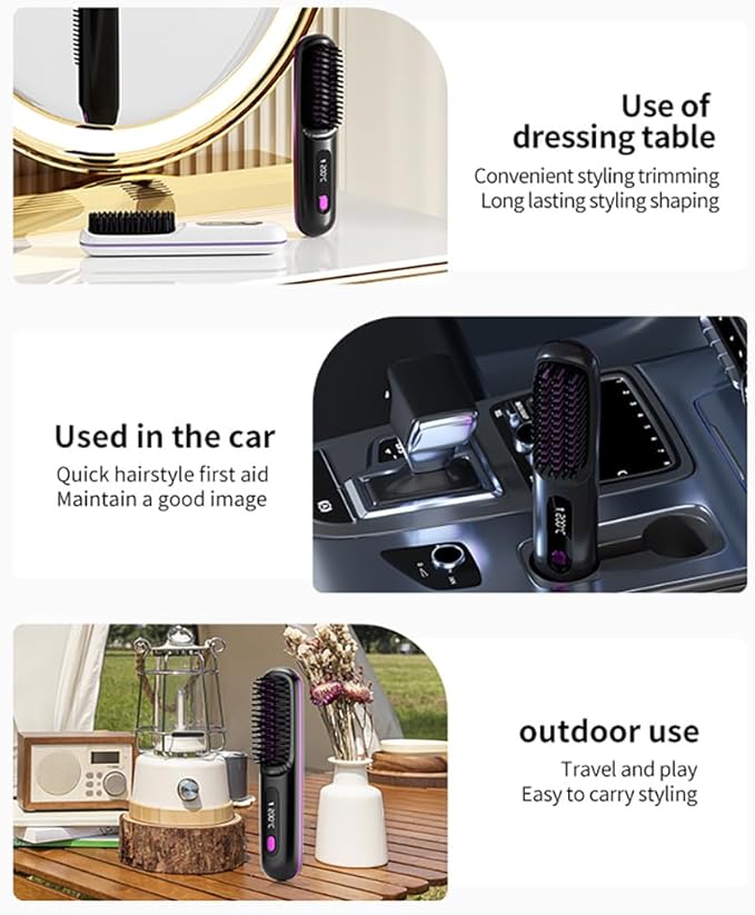 Go Brush Pro 2025 Cordless Hair Straightener Brush – 3 Heat Settings, USB Rechargeable, 2-in-3 Straightener & Curler, Ionic Anti-Static for All Hair Types (Black)