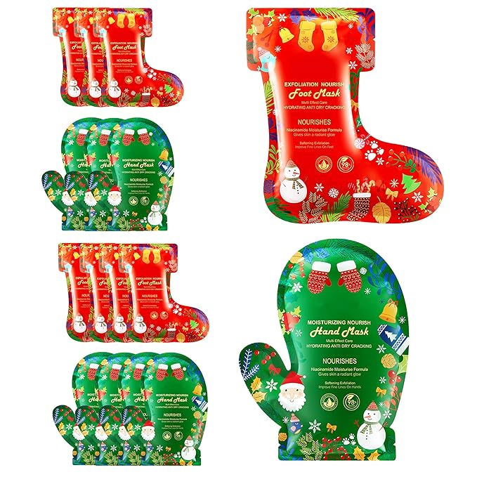 Christmas Hand Foot Masks Set for Women Teen Girls Selfcare Spa Stocking Stuffers Hydrating Repair Moisturizing Gloves Socks (16PCS)